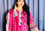 উজ্জ্বল হট পিংক রঙের এই কামিজে রয়েছে সুন্দর চেরি ব্লসম ও ফুলেল ভাইন প্রিন্ট। সামনে ব্লাশ প্লাকেট প্যানেলে কালো শেভরন বর্ডার ও পার্ল বাটন লুককে আকর্ষণীয় করে তোলে। চওড়া বেল স্লিভের কাফে মেরুন-ক্রিম প্রিন্ট ও সাদা স্ক্যালপড লেস ট্রিম — সত্যিই নজরকাড়া।