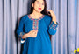 গাঢ় টিল ব্লু / পিকক ব্লু রঙের এই প্রিমিয়াম শর্ট কুর্তিটি দেখতে যেমন আকর্ষণীয়, পরতেও তেমন আরামদায়ক। রাউন্ড নেকলাইন ও সামনের প্লাকেটে গোলাপি, গোল্ড, বেগুনি ও সবুজ রঙের সুন্দর মাল্টিকালার ফুলেল এমব্রয়ডারি রয়েছে। ৩/৪ স্লিভের কাফেও একই এমব্রয়ডারি ডিজাইন — যা পুরো লুককে পরিপাটি ও মানানসই করে তোলে। এ-লাইন সিলুয়েট আরামদায়ক ও সবার জন্য মানানসই।